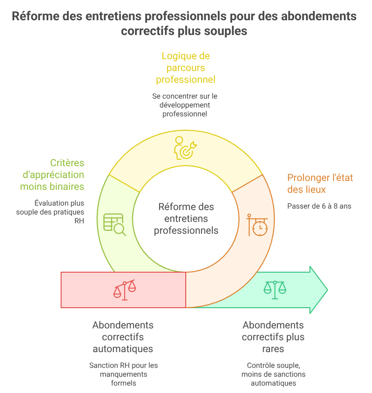 En conséquence, le principe juridique de l’abondement correctif n’a pas disparu, mais son déclenchement devient plus rare, plus complexe à objectiver et moins immédiatement lisible. Ce n’est donc pas une suppression du dispositif, mais un glissement progressif vers un contrôle plus souple, qui réduit fortement le rôle des abondements correctifs comme outil de sanction automatique des pratiques RH.