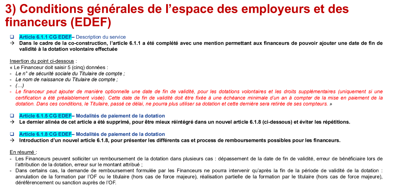 Slide 8, article 6.1.1 des CG EDEF. C’est probablement la nouveauté la plus importante pour les politiques compétences internes.