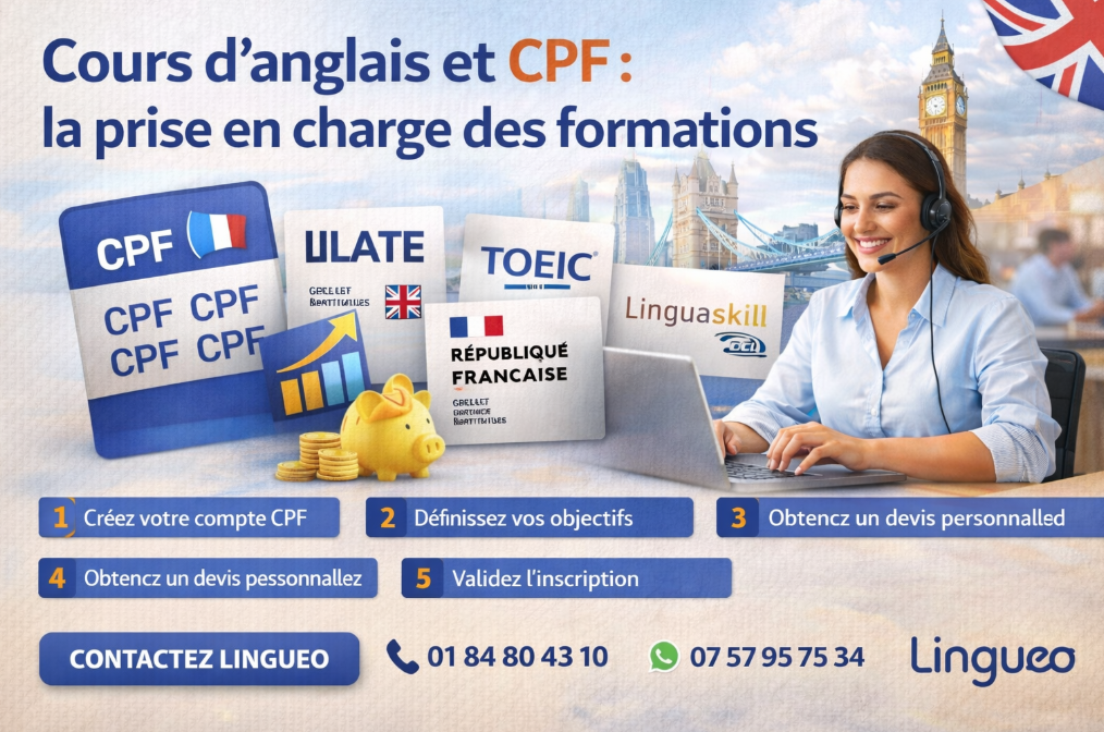 Pour être accompagné dans votre projet de formation CPF anglais, contactez Lingueo :